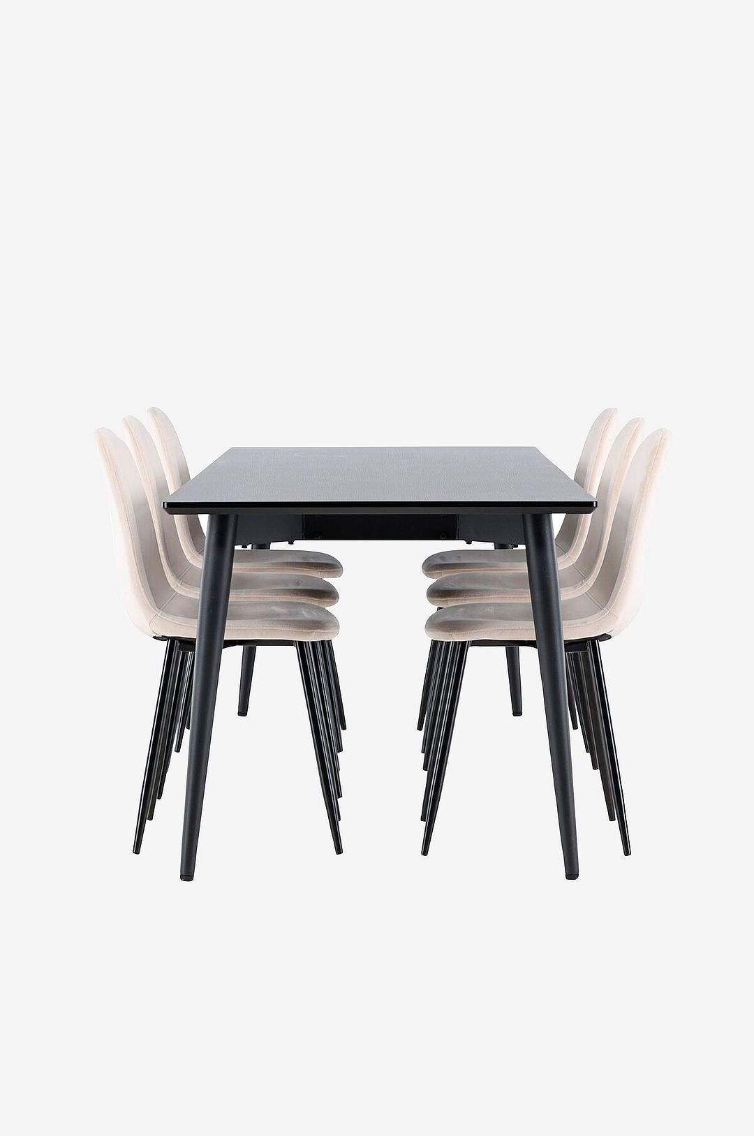 Ge ditt hem en sofistikerad och modern känsla med vår stilrena matgrupp bestående av polar matstolar och ellis matbord. Polar är en elegant matstol i lyxig anda med helklädd design och metallben. Den lätt rundade ryggen och sitsen i snyggt sammetstyg med mjuk stoppning ger extra komfort. Här behöver du inte kompromissa mellan komfort och design. Stolen är inte bara bekväm utan också en snygg detalj som förhöjer rummets estetik. Matcha Polar-stolarna med det robusta ellis-matbordet, som kommer att bli navet i din matmiljö. Ellis-bordet ger en elegant och modern touch till ditt rum. Bordet är tillverkat med stålben och en bordsskiva i mdf, vilket ger en perfekt balans mellan robusthet och stil. Med sina generösa mått på 230×85 cm är ellis-bordet perfekt för sociala middagar och sammankomster med vänner och familj. Skapa en trendig och stilfull atmosfär i ditt hem med vår matgrupp som kombinerar elegans, komfort och funktionalitet