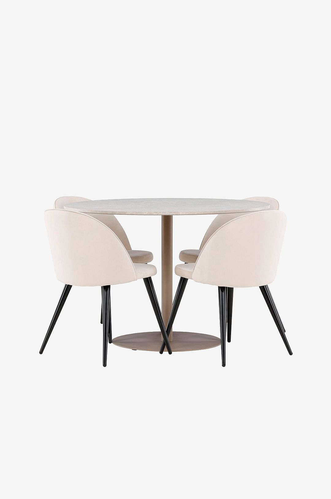 Venture Home – Lycke matbord med matstol i sammet – Beige – Matgrupp 4 personer – Från Homeroom