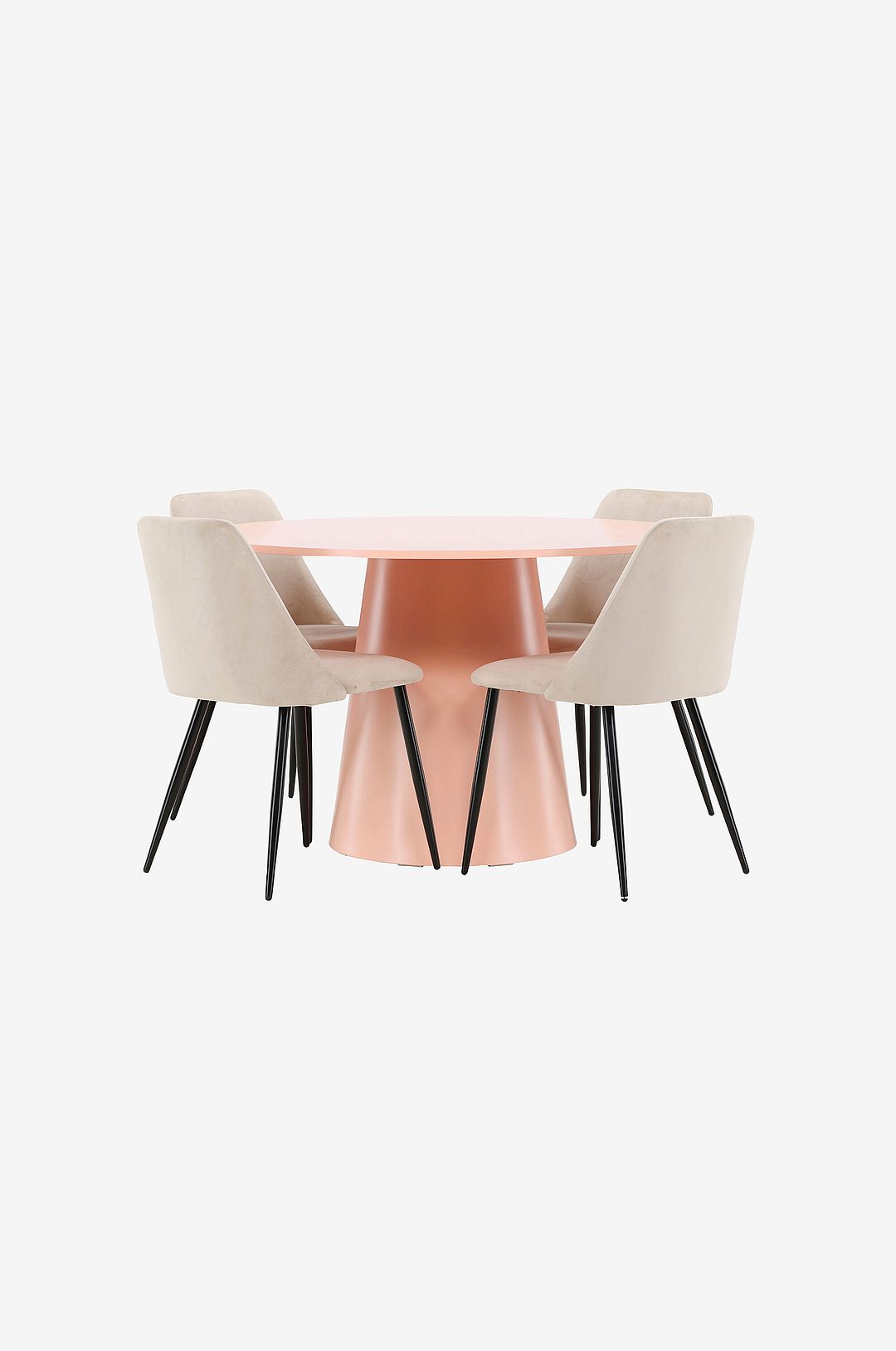 Förvandla din matplats med den eleganta och stilfulla kombinationen av matbordet Lanzo och matstolarna Night, två möbler som tillsammans skapar en modern och sofistikerad atmosfär. matbordet lanzo ger en fräsch och levande uppdatering till ditt hem med sin fint utformade finish. Bordets runda form och enhetliga design, som sträcker sig sömlöst från bordsskivan till benen, skapar en harmonisk och inbjudande känsla. De genomtänkta detaljerna fungerar som en naturlig fokuspunkt och ger en sofistikerad touch till din inredning. Med sin mångsidiga design och gott om sittplatser gör lanzo varje måltid eller social sammankomst till en mysig och trevlig upplevelse. matstolen night, klädd i mjukt tyg av hög kvalitet, kompletterar bordet med sin lyxiga och eleganta stil. Den raffinerade designen ger en touch av sofistikering och passar sömlöst in i både moderna och klassiska inredningsstilar. De smäckra benen ger en slående kontrast och ger stolen ett balanserat och modernt utseende. Night är ergonomiskt utformad för utmärkt stöd och garanterar komfort under långa, avkopplande middagar, vilket gör den både vacker och funktionell. Tillsammans skapar lanzo och night en harmonisk och inbjudande matplats som förhöjer hela ditt hem. Med sin unika design och genomtänkta komfort är den här uppsättningen det perfekta valet för alla som söker en matplats som är både funktionell och elegant.