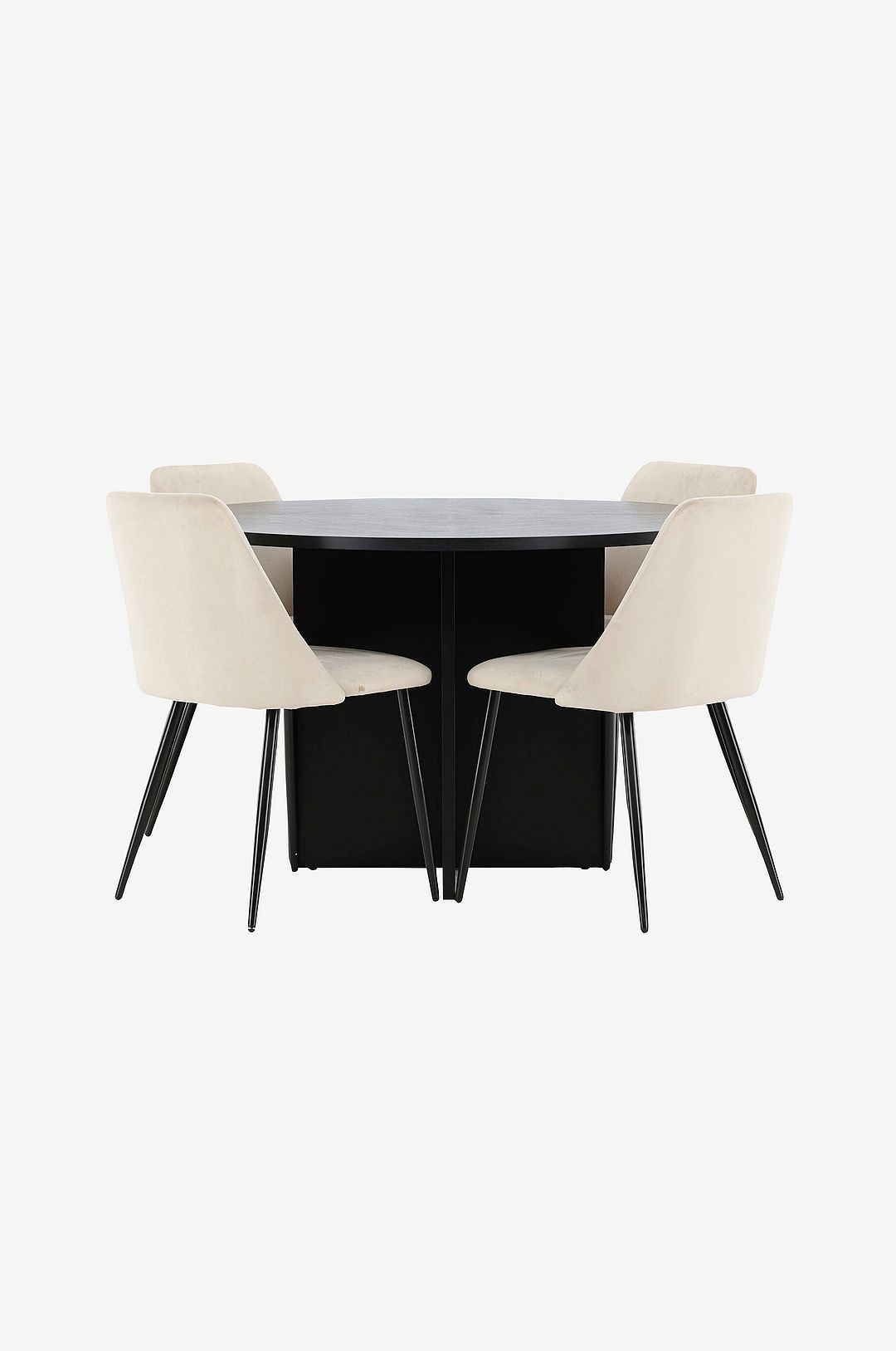Skapa en sofistikerad och tidlös matplats med matstolen Night och matbordet Strada. Förvandla din matsal med den perfekta kombinationen av lyxig design och praktisk funktionalitet. Tillsammans erbjuder night dining-stolen och strada-matbordet en elegant och flexibel lösning som gör varje måltid till en elegant upplevelse. night dining chair är klädd i mjuk sammet, vilket ger en sofistikerad och inbjudande känsla. Dess raffinerade design smälter harmoniskt in i olika inredningsstilar, från modern minimalism till klassisk charm. De smäckra benen ger en vacker kontrast och skapar en stabil och elegant profil. Med sin ergonomiska design och bekväma sits är night perfekt för långa middagar och trevliga stunder runt bordet. matbordet strada kombinerar elegant design med praktisk funktionalitet. Bordet är tillverkat av högkvalitativt fanerträ som framhäver materialets naturliga struktur och ger en luftig känsla till din matsal. Med en diameter på 120 cm är strada perfekt för vardagliga måltider, men när det behövs kan det enkelt förlängas till 170 cm för att rymma fler gäster. Dess robusta konstruktion och tidlösa design gör den till en pålitlig och elegant mittpunkt i ditt hem. tillsammans skapar night och strada en matplats som är både elegant och funktionell. Kombinationen av den mjuka klädseln i night och den flexibla, tidlösa designen i strada ger en balanserad helhet där komfort möter estetik. Låt matstolen night och matbordet strada bli hjärtat i ditt hem – en plats där stil, funktion och samhörighet förenas för att skapa oförglömliga stunder vid varje måltid.