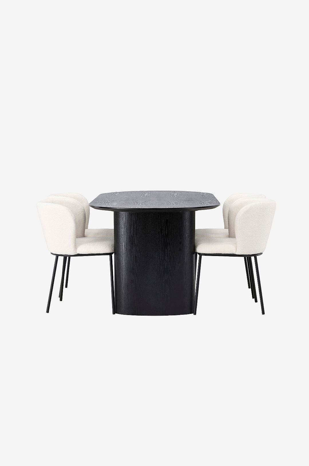 En fantastisk kombination av moderna former och mjuka material! Det ovala matbordet isolde i stilfull kulör har en modern utformning med en oval bordskiva i mdf och robust stomme som ger ett stadigt intryck. Det levande materialet ger smakfull rörelse till blickfånget. Här i underbar kombination med matstolar från serien edina. Stolen har en följsam, helklädd sits i boucletyg och minimalistiska stolsben i metall. Den stilrena utformningen och bekväma sitsen ger dig en skön matstol som står sig över tid.