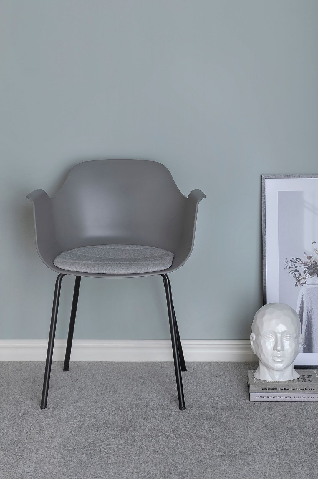 Catrine matstol med stolsits i 100 % plast och sittdyna i 100 % polyester samt stolsben i metall. Stolens mått: Höjd: 45cm, Bredd: 42cm, Djup: 39cm, Vikt: 5.5kg. Stolen kräver enklare montering.