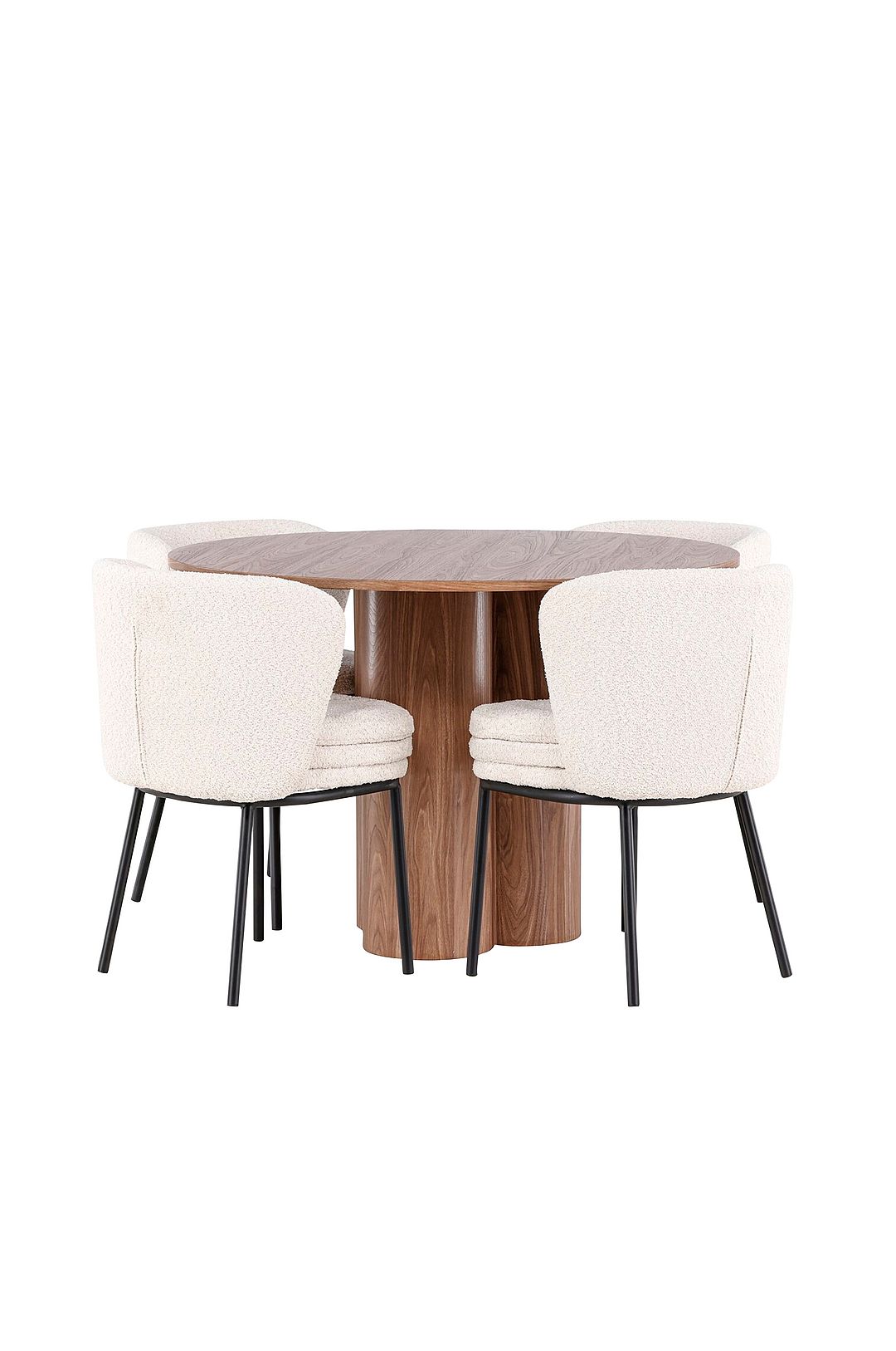 Skapa en elegant och inbjudande matplats med vår sofistikerade matgrupp som kombinerar det eleganta olivia-bordet med de lyxiga agnes-stolarna. Denna matgrupp är perfekt för både vardagliga middagar och festliga tillfällen och ger din matsal en modern och harmonisk atmosfär. Olivias matbord är tillverkat av mdf och ger en varm och inbjudande känsla till din matsal. Med en diameter på 110 cm erbjuder bordet gott om utrymme för mat och samtal, samtidigt som dess runda form skapar en balanserad och social miljö. Bordets robusta konstruktion garanterar långvarig användning och stabilitet. De fyra agnes-stolarna kompletterar bordet perfekt med sina eleganta sitsar klädda i boucle. Stolarna erbjuder både komfort och stil, vilket gör dem idealiska för långa, trevliga middagar med familj och vänner. Deras moderna design med höga ryggstöd och mjuka sitsar ger din matsal en sofistikerad och modern touch. Denna matgrupp är en perfekt kombination av estetik och funktionalitet, vilket gör den till ett utmärkt val för dig som vill ha en elegant och bekväm matplats. Uppgradera din matsal med en kombination av olivia-bordet och agnes-stolarna och skapa en plats där minnen och glädje delas.