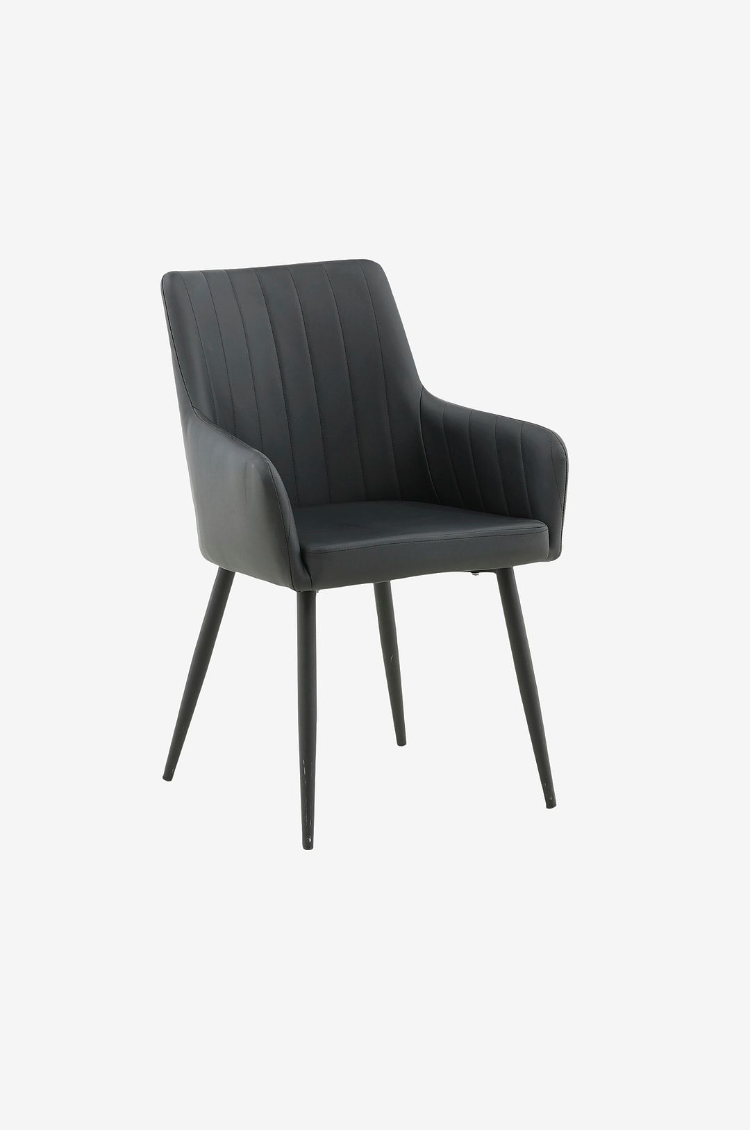 Vår läckra matstol från Comfort-serien i tuff helklädd design med ben i pulverlackerad metall. Rygg och sits med integrerade armstöd i konstläder med skön sittkomfort. Dekorativa sömmar på insidan av rygg och armstöd blir en snygg detalj. Sitt bekvämt och bjud in till trevliga måltider framöver! Lättare montering krävs. Skötselråd: Vid svåra fläckar, en fuktad bomullsduk och ett medel avsett för rengöring av bycast & amp kan rengöras; PU används, prova först på ett icke synligt område eftersom vissa medel kan ha olika sammansättningar. Torka och polera med en mjuk bomullsduk för att återställa möbelns högglansiga yta.