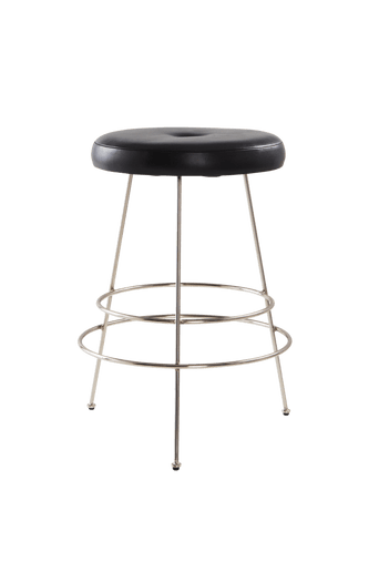 Barpall med mjukstoppad, läderklädd sits och pläterade metallben. Två metallringar som fotstöd nertill. Känn inspirationen från ett amerikanskt hamburgerhak med svartvitrutigt golv och skön retrostil. ALABAMA smälter in perfekt med tidstypiska pläterade ben och en bekvämt mjukstoppad lädersits. Viss montering krävs. Monteringsanvisningar medföljer. Material: Metall och läder. Storlek: Höjd 65 cm, sits ø 40 cm, sits tjocklek 5 cm. Skötselråd: Torkas av med lätt fuktad trasa. Formgivare: Jotex Design Studio. Tips/råd: En lädersits blir snyggt sliten med tiden och den är praktiskt enkel att hålla ren.
