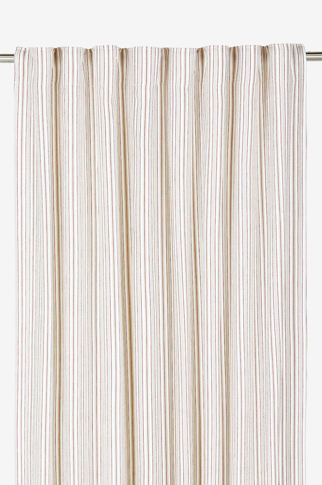 2-pack randiga multibandslängder. Randen är garnfärgad vilket gör att den håller sig bra efter tvätt samt att baksidan är lika fin som framsidan. Gardinen har multiband i ovankant, fållade långsidor och overlocksöm i nederkant. Använd snabbfållningsband för att få rätt längd på gardinen. Måttet på varje gardin är 140x250cm. Multibandet är en flexibel lösning som gör att gardinen kan hängas upp antingen med fingerkrokar, räkor eller direkt på en stång beroende på vilken typ av veck och vilket fall man vill ha på gardinen. Produkten är certifierad enligt STANDARD 100 by OEKO-TEX®. Certifieringen garanterar att produkten är testad och fri från ämnen som kan vara skadliga för hälsan och miljön.100% Bomull.