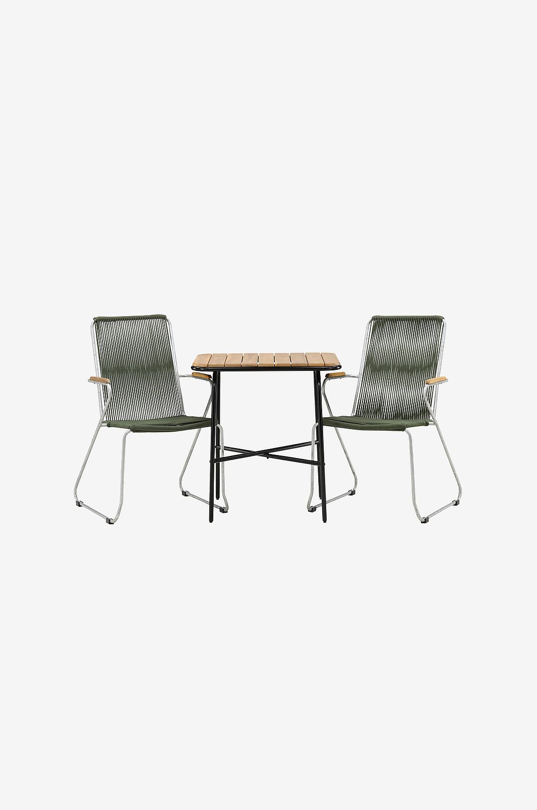 En behaglig och charmig cafégrupp till den lilla balkongen eller uteplatsen! Vårt stilrena cafébord holmbeck har en modern, ribbad bordsskiva i akacia och ett minimalistiskt underrede i stål. Här tillsammans med 2st a matstolar från serien bois. Stolen har en sits i slitstarkt rep i en populär färg och smal stomme i stål. Duka ut fikan och njut av en mysig stund utomhus!