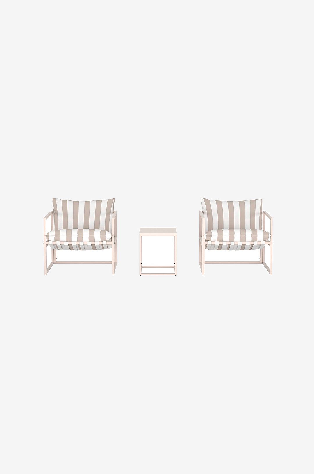 Messina är ett elegant loungeset som kombinerar modern form med en avslappnad känsla. Setet innehåller två generösa fåtöljer med mjuka kuddar i ett vackert randigt tyg, samt ett praktiskt bord – perfekt för en kopp kaffe, en kvällsdrink eller din favoritbok. de bekväma dynorna och den eleganta ramen gör messina till en möbelgrupp som är både inbjudande och dekorativ. Oavsett om den placeras på uteplatsen, balkongen eller i trädgården blir loungesetet Messina snabbt en favoritplats för avkoppling och sociala stunder.