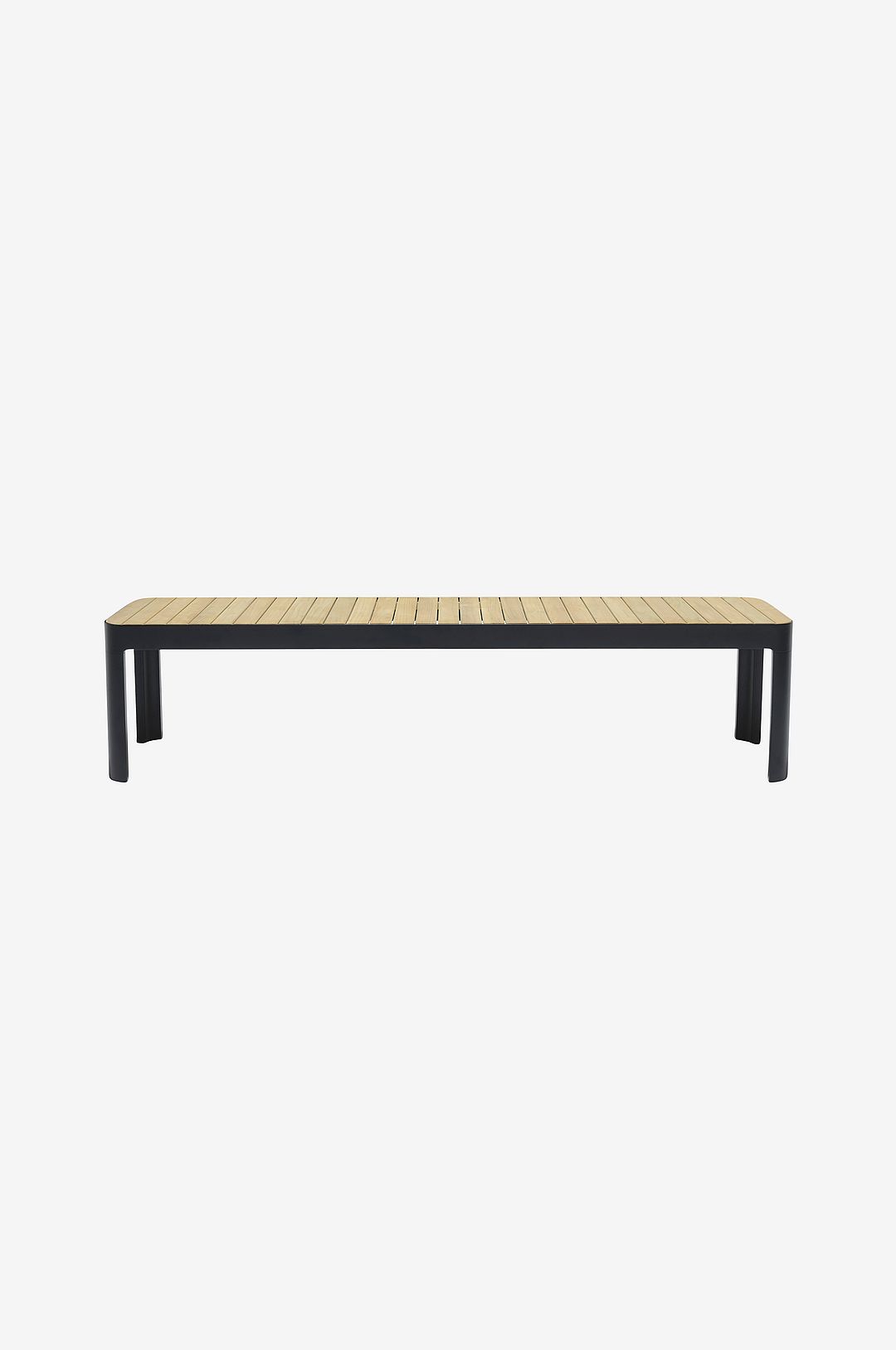 Die Casted Aluminum Bench with Teak FSC seat. Good for 3-4 people, sanded finish in ecru white.