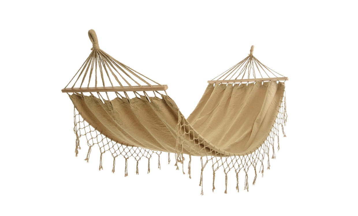 Dröm dig bort till varmare breddgrader med denna orientaliska hängmatta. Med en stadig träram i björk och rep som matchar ger denna hängmatta ifrån sig en gedigen känsla. Fransarna i macrame blir en vacker detalj på denna sköna oas.Design & egenskaperEn härlig hängmatta med vackra fransar.Hängmattan är 100x200x3 cm.Hängmattan klarar en maxvikt på 120 kg.Material & skötselTräslaget är björk.Tygets sammansättning: 55% bomull och 45% polyester.100% FSC.Leverans & förpackningLevereras monteradAntal förpackningar: 1 stVikt: 1,5 kg