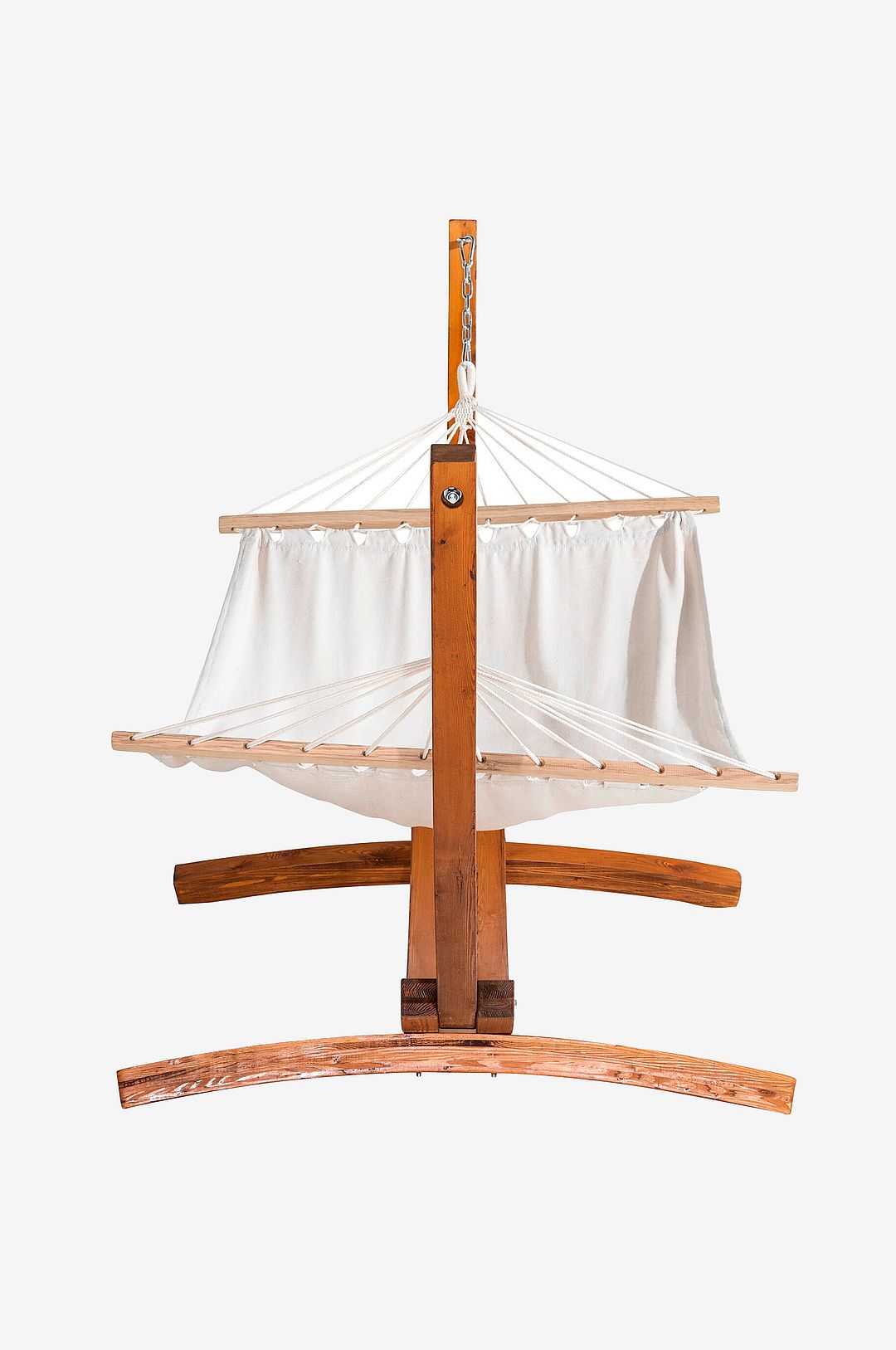 Möblera din uteplats pampigt med en härlig hängmatta från serien Hedvig! Träramen ger hängmattan en lyxig känsla och klassisk look. Den stilrena polyestermattan i kräm nyans sänker elegans till helhetsintrycket. En hängmatta med alla rätt helt enkelt, här får du koppla av och njuta av härliga sommardagar i frisk utemiljö!