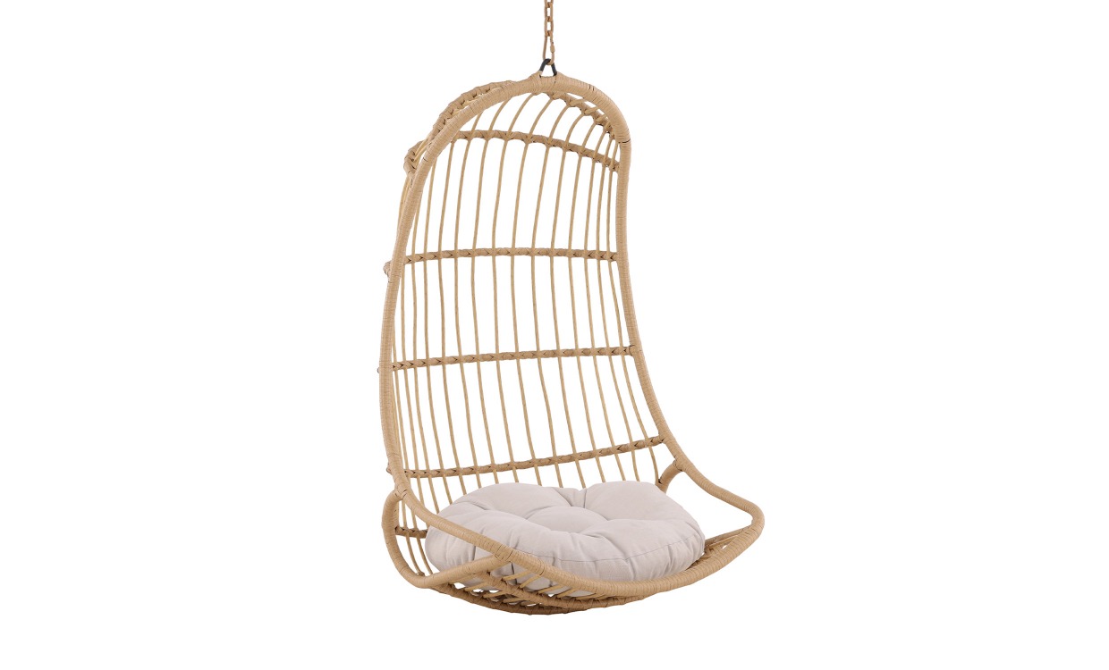 Even är en elegant och bekväm hängstol som skapar den perfekta platsen för avkoppling utomhus. Med sin stilrena design i konstrotting och en stabil stomme av aluminium ger den en harmonisk och naturlig känsla i trädgården, på terrassen eller vid poolen. Den mjuka vita dynan gör stolen extra inbjudande och bekväm.Design & egenskaperElegant och bekväm hängstol.Mjuk dyna medföljer. Har en maxvikt på 120 kg.Material & skötselTillverkat i konstrotting och dynan i polyester.Skydda dina möbler vid extremväder.
