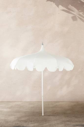 Stabilt solparasoll tillverkad i italiensk originaldesign. De fina materialvalen gör parasollet mycket tåligt. Tjockt slitstakt tyg i 100% akryl och 2-delad aluminiumstång med smidig fällningsmekanism som gör parasollet enkelt att fälla upp och ned. Parasollet har smarta krokar till badkläderna samt 10 st ribbor i galvaniserat stål med pulverlackerad yta som gör parasollet saltsäkert. De lätt böjda ribborna gör parasollet extra motståndskraftigt i vind. Pasarollet är tillverkad i Italien. MADONNA solparasoll kan du ha glädje av sommar efter sommar – nu hoppas vi på soligt väder! Notera att parasollfot ingår ej, utan köpes separat. Välj bland flera fina modeller. Material: Aluminium och akryl Storlek: Höjd 255 cm, ø 200 cm. Stolpdiameter 4 cm (vilket förutsätter en parasollfot med öppning minst 42 mm). Tips/råd: Stick ner parasollet direkt i sanden precis som på stranden i Italien, eller använd tillsammans med parasollfot. Vid användning av parasollfot rekommenderas en vikt på basen på minst 35 kg, gärna ännu tyngre för bättre stabilitet.