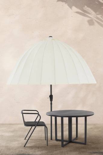 Parasoll i en härligt rundad form som är mycket dekorativ och som ger härligt solskydd. Parasollet har tåligt tyg i polyester. Den tvådelade stången är av aluminium medan de 24 ribborna under parasollet är av glasfiber. Klassisk låsanordning gör parasollet enkelt att fälla upp och ned. Höjden kan justeras. Den spetsiga nederdelen på stången gör att du kan ta med parasollet till stranden en vindstilla dag och sticka ner det i sanden för härligt solskydd. Parasollfot ingår ej. Parasollet ska inte vara uppfällt i stark vind och regnväder. Material: Aluminium, glasfiber och polyester. Storlek: Höjd 250 cm, ø 200 cm. Stolpdiameter 3,8 cm (vilket förutsätter en parasollfot med öppning minst 4,4 cm). Skötselråd: Torkas av med lätt fuktad trasa. Tänk på att förvara dina utemöbler frostfritt för att undvika frostskador. Tips/råd: Kom ihåg att köpa parasollfot också, så kan du använda ditt nya parasoll direkt. Ju tyngre parasollfot desto stabilare blir det.