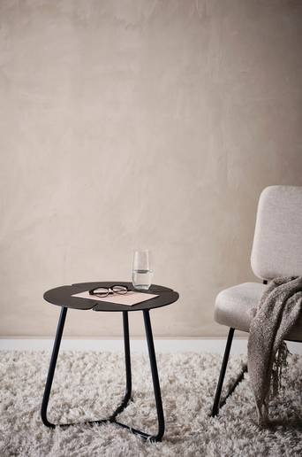 Sidobord av pulverlackerad aluminium med matt yta. Aluminium är ett praktiskt material som har låg vikt och det rostar inte, du kan låta det stå utomhus. Den matta pulverlacken är behaglig utan att reflektera solljuset. Material: Aluminium. Storlek: Höjd 44,5 cm, ø 45 cm. Skötselråd: Torkas av med lätt fuktad trasa. Tips/råd: SOLLER gör sig fint tillsammans med loungestolen CAPRI.