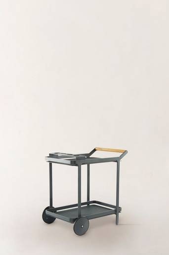 Serveringsvagn av pulverlackerad aluminium med matt yta och bekvämt, runt handtag av trä. VENEZIA gör livet på altanen enklare till exempel när du ska servera vid bordet eller vid grillen som tillbehörsvagn. En praktisk hållare för fyra glas eller flaskor ingår och matchar vagnen perfekt. Den kan du placera var du vill på vagnen. Hjulparet i framkant gör den enkel att köra, du bara lyfter och rullar fram och serveringsvagnen står stabilt eftersom den bara har ett hjulpar. Aluminium är ett bra och tåligt material utomhus och det rostar inte. Viss montering krävs. Produkten består även av teakträ som är avverkat från ett hållbart och ansvarsfullt skogsbruk vilket tar hänsyn till både människor och miljö. Kontakta gärna vår kundtjänst om du har frågor kring hur vi arbetar med hållbar teak. Material: Aluminium och teak. Storlek: Höjd 82 cm, bredd 78,5 cm, djup 50 cm. Höjd mellan avlastningshyllan och bordsskivan 58 cm. Mått flask-/glashållare 12,2×46 cm, hål ø 8 cm. Skötselråd: Torkas av med lätt fuktad trasa. Förvara dina utemöbler frostfritt för att undvika frostskador. Tips/råd: Stolen BIELLA finns i matchande färger och passar perfekt tillsammans med VENEZIA.