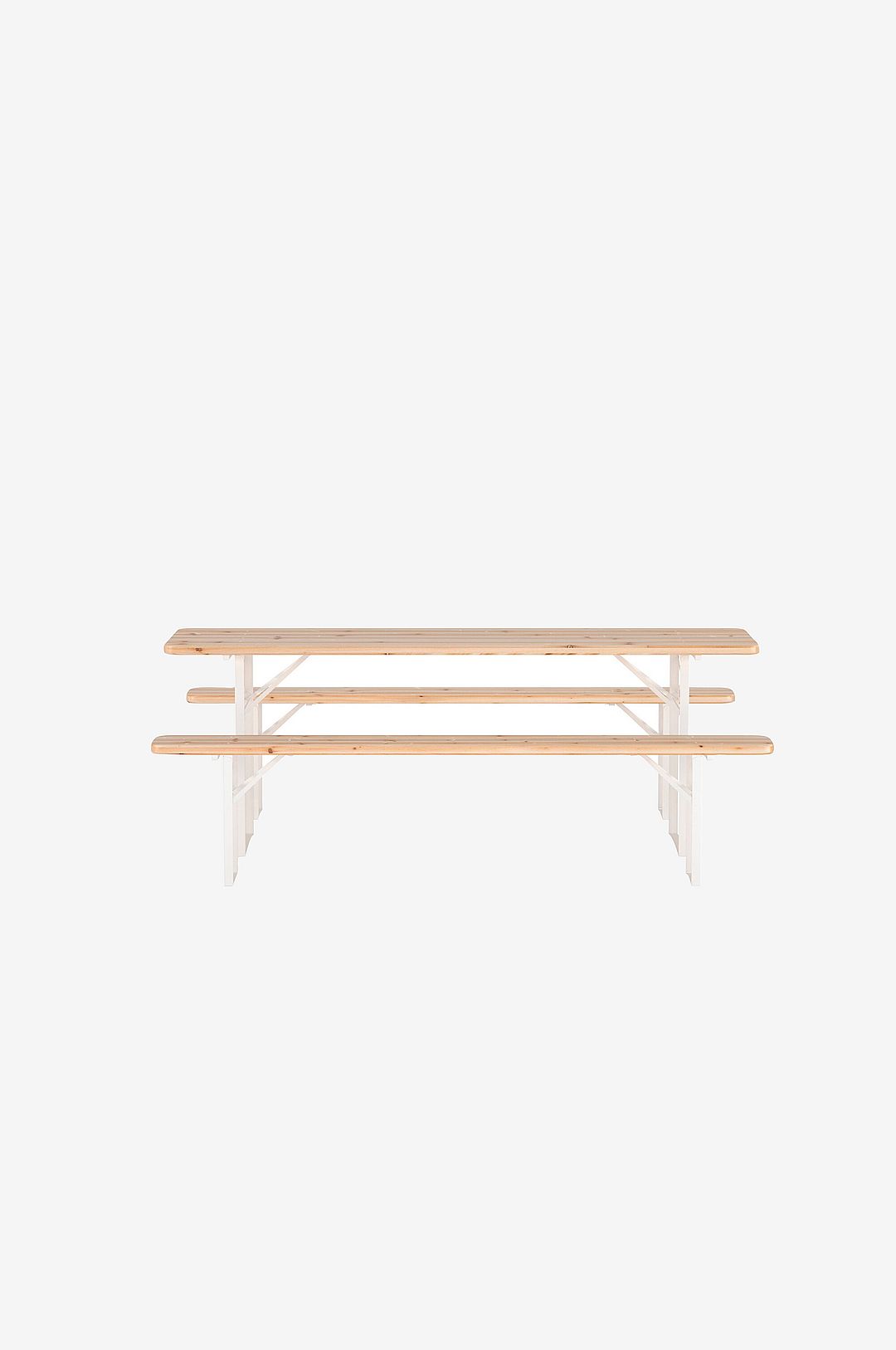 Samla familj och vänner runt Guiness matgrupp – en klassisk och funktionell lösning för både vardagsbruk och juliga tillfällen. Setet består av ett rektangulärt bord och två matchande bänkar i en elegant teaklook med en robust beige ram, vilket skapar en varm och tidlös atmosfär som smälter sömlöst in i alla utomhusutrymmen. guiness är med sina rena linjer och praktiska konstruktion lika lämplig för trädgården och uteplatsen som för större sammankomster och evenemang. Bänkarna ger gott om sittplatser, vilket gör uppsättningen perfekt för sociala middagar, picknickliknande måltider eller spontana sommarfester. guiness matgrupp kombinerar funktionalitet, enkelhet och stil – en naturlig mittpunkt för utomhusmöten.