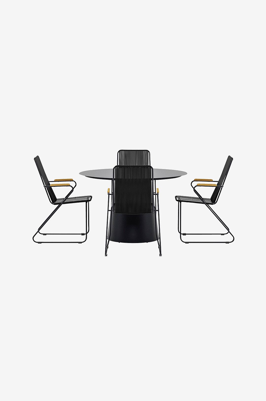 Skapa en modern och elegant uteservering med den eleganta bois & lanzo-matsetet. De trendiga bois-stolarna kombinerar komfort och design med armstöd i teak och en sits i svart rep som ger en chic och inbjudande känsla. Den stapelbara funktionen gör dem också lätta att förvara när säsongen förändras. Matbordet lanzo, med sin runda form och exklusiva konformade fot, blir en naturlig fokuspunkt på uteplatsen eller terrassen. Den generösa diametern på 120 cm ger gott om utrymme för både vardagliga måltider och juliga tillfällen med familj och vänner. Bordets rena linjer och moderna uttryck kompletterar stolarna på ett perfekt sätt. Tillsammans skapar bois-stolarna och lanzo-bordet en elegant och harmonisk matgrupp – perfekt för alla som vill kombinera funktion, design och njutbara utomhusstunder.