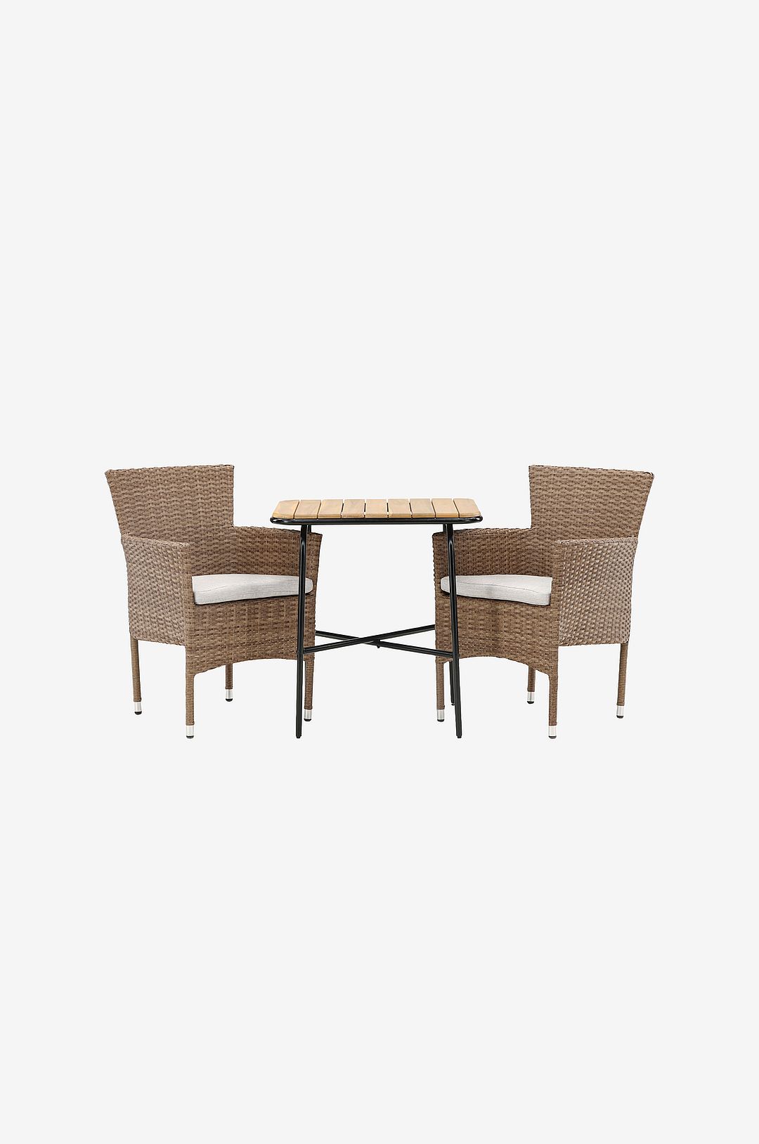Bekvämt och klassiskt kan aldrig bli fel! Vårt stilrena cafébord holmbeck har en modern, ribbad bordsskiva i akacia och ett minimalistiskt underrede i stål. Här i kombination med våra läckra matstolar från serien malina. Stolen har en stomme i aluminium och är klädd i flätad, konstrotting. Det ska kännas skönt att slå sig ner till eftermiddagsfikan utomhus!
