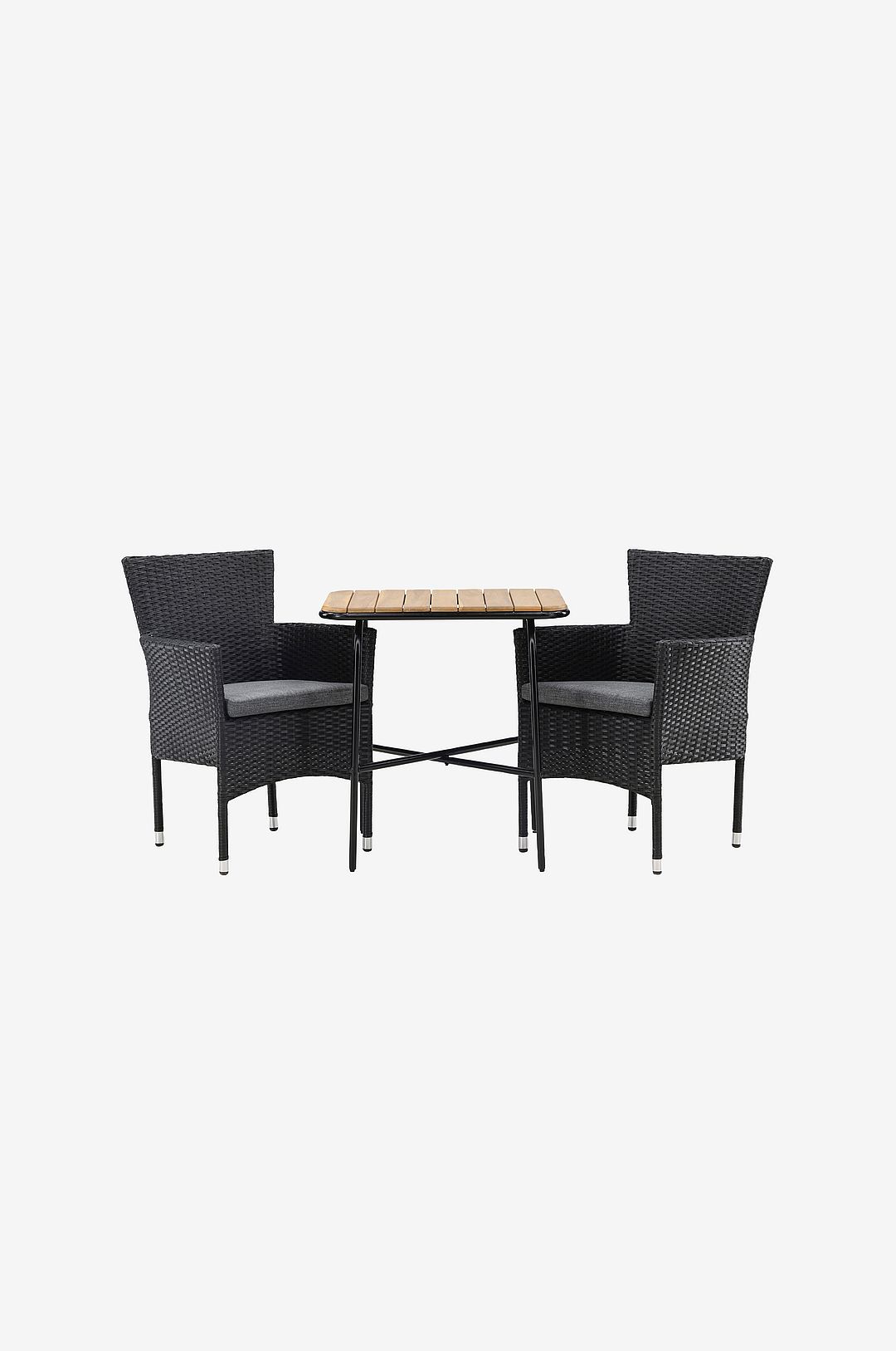 Bekvämt och klassiskt kan aldrig bli fel! Vårt stilrena cafébord holmbeck har en modern, ribbad bordsskiva i akacia och ett minimalistiskt underrede i stål. Här i kombination med våra läckra matstolar från serien malina. Stolen har en stomme i aluminium och är klädd i flätad, konstrotting. Det ska kännas skönt att slå sig ner till eftermiddagsfikan utomhus!