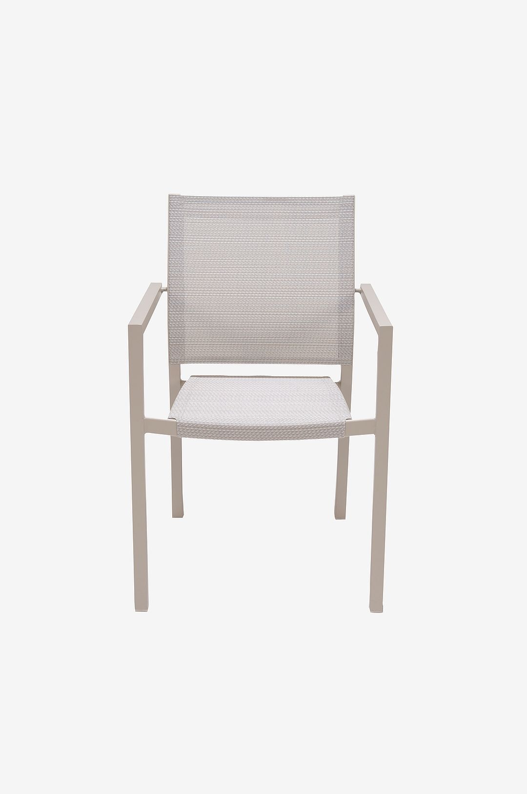Stapelbar fåtölj i aluminium, underhållsfri, ecruvit färg med slipad effekt.