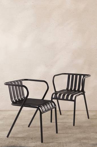 2-pack karmstolar av aluminium med matt yta. Serien NERJA har mjuka linjer men är ändå kaxig i sitt uttryck. Aluminiumprofilen är lite kraftigare, men aluminium är ett lätt material vilket gör att NERJA har låg vikt. NERJA tål att stå utomhus, aluminium rostar inte och det är enkelt att torka av. Karmstolen är stapelbar. Material: Aluminium. Storlek: Höjd 70 cm, bredd 51 cm, djup 56,5 cm, sitthöjd 44,5 cm. Maxvikt: 90 kg Skötselråd: Torkas av med lätt fuktad trasa. Tänk på att förvara dina utemöbler frostfritt för att undvika frostskador. Tips/råd: En matta under utemöbeln ger mysig känsla. På Jotex har vi ett stort utbud av mattor som tål att ligga utomhus.