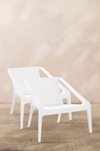 2-pack loungestolar i gjuten plast. En komfortabel loungestol med formgjuten sits i polypropylen. Stolen är stapelbar vilket gör att den är lätt och att ta fram och ställa undan. Material: Plast (polypropylen). Storlek: Höjd 66,5 cm, bredd 74 cm, djup 69,5 cm, sitthöjd 36 cm. Maxvikt: 150 kg. Skötselråd: Torkas med fuktig trasa. Tips/råd: Kan användas både inomhus som utomhus!